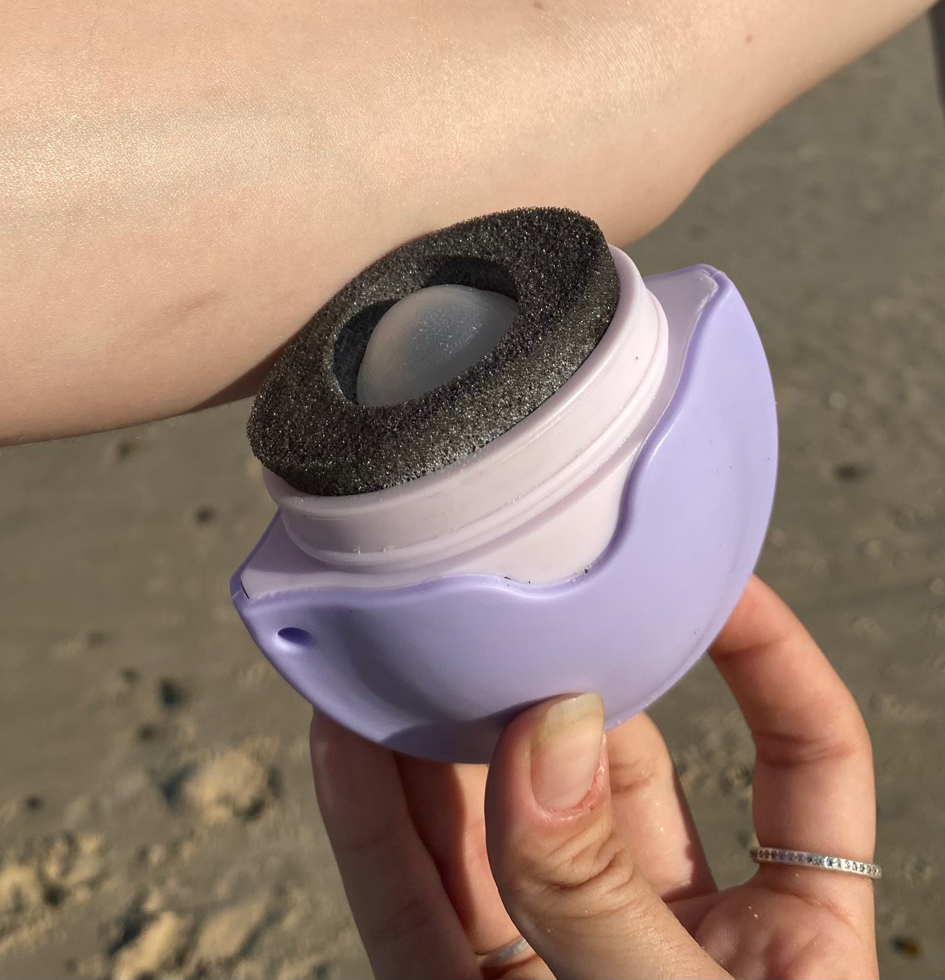 A: Yep! It works best with lotion based sunscreens (not sprays or thick pastes). Just pour your fave SPF in and roll on.